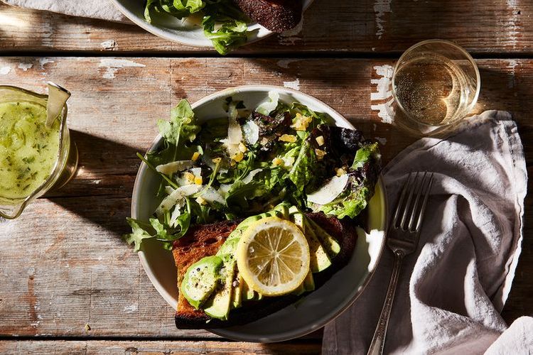 Thick-cut, salted olive oil toast and avocado, to serve (optional)