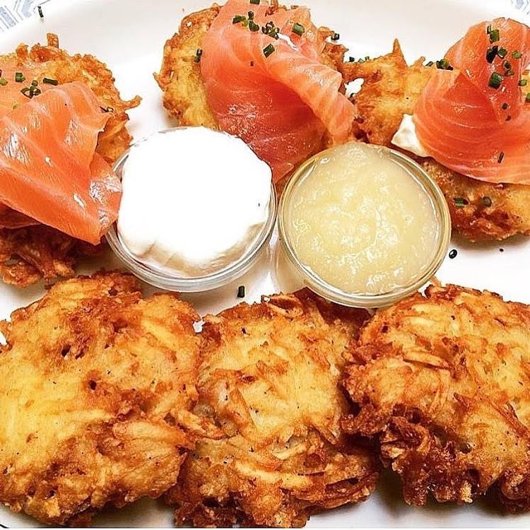 You can find Baz's classic latkes year-round, and they're definitely worth seeking out. From Grandma Joyce's Famous Potato Latke with Sour Cream and Applesauce to their as-seen-on-TV Latke Fancy Pants topped with Nova, Salmon Roe, Sour Cream and Chive, there's a potato pancake for everyone.