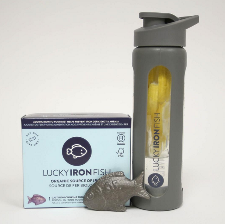 Lucky Iron Fish is a growing social enterprise with a mission to wipe out iron deficiency, which affects 3.5 billion people in the developed and developing world. This invention is shaped like a fish because it is a symbol of good luck in Cambodian culture. The iron fish are designed to release iron at the ideal concentration to provide nutrients that individuals with iron deficiency are lacking. When you purchase a Lucky Iron Fish for your family at LuckyIronFish.com $25), the organization will also donate one to a family in need.