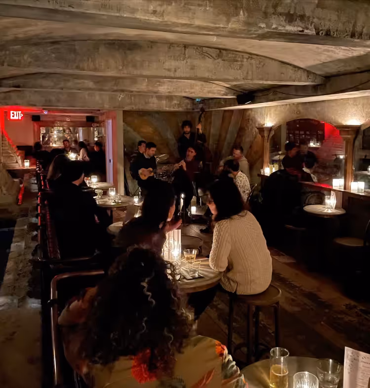 Go up an alley and down the stairs and you'll find Saint Tuesday, a cozy and clandestine cocktail bar in the cellar of Tribeca's trendy Walker Hotel. The intimate space is decked out in vintage-style interiors, complete with wooden bistro seating, cushy booths, and candlelit tables for sitting back with a bespoke cocktail while you catch live music every night from 9:30 to midnight. There's nothing like some jazz and blues to help set the mood.