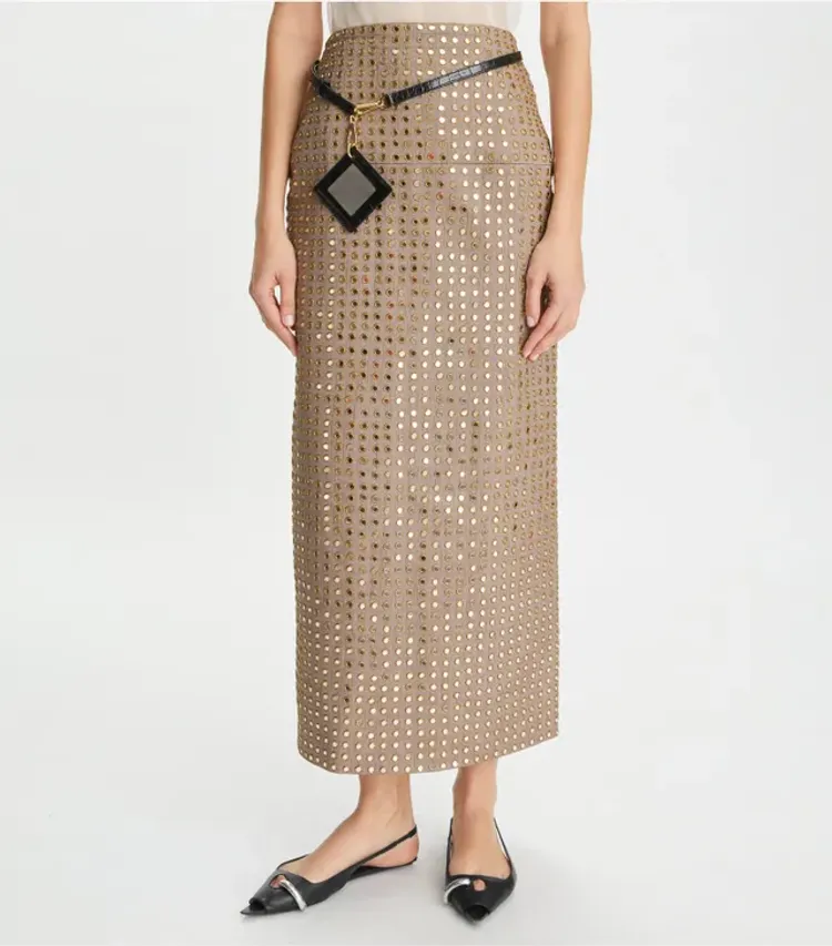 Tory Burch Layered Hand-Done Mirrorwork Skirt, $2,798 $1,399 [Plus extra 10% off]
